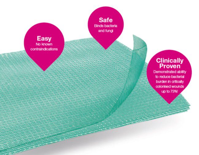 Cutimed Sorbact stands for a unique bacteria-binding concept that works without a chemically active agent. Instead, a physical principle is used to cleanse colonised and infected wounds: Bacteria and fungi become physically bound to the dressing by hydrophobic interaction.